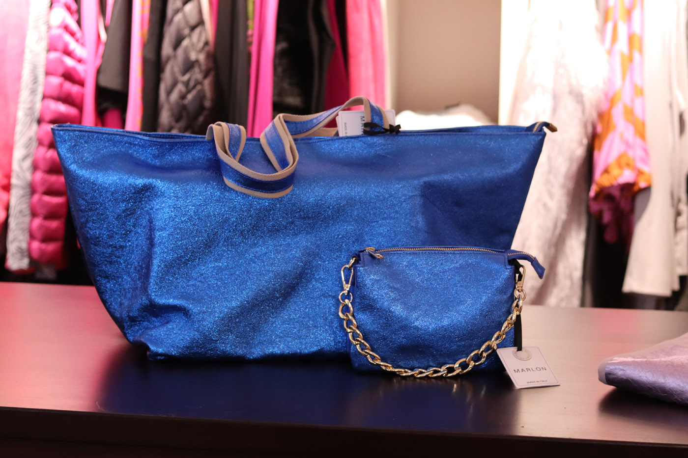 Kleine Ledertasche von Marlon Firenze in blau-metallic.